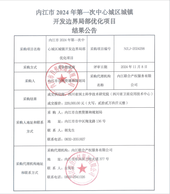 內(nèi)江市2024年第一次中心城區(qū)城鎮(zhèn)開發(fā)邊界局部?jī)?yōu)化項(xiàng)目結(jié)果公告
