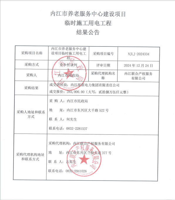 內(nèi)江市養(yǎng)老服務(wù)中心建設(shè)項(xiàng)目臨時(shí)施工用電工程結(jié)果公告