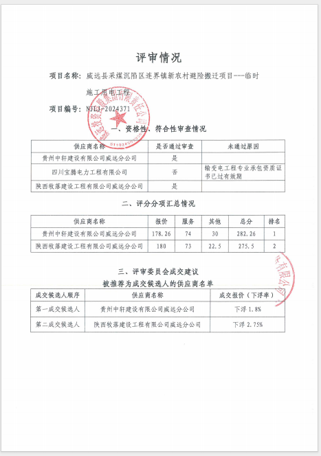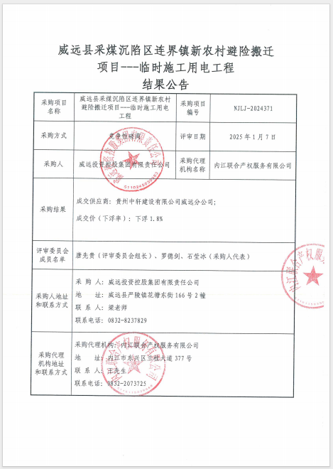 威遠縣采煤沉陷區(qū)連界鎮(zhèn)新農(nóng)村避險搬遷項目---臨時施工用電工程結(jié)果公告