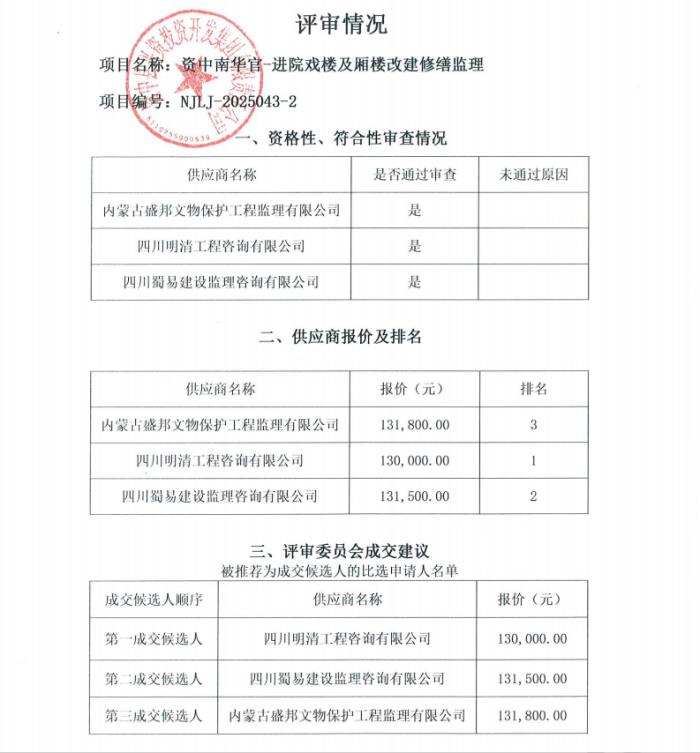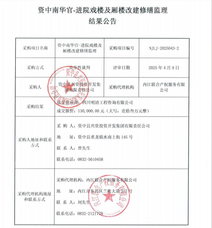 資中南華官-進(jìn)院戲樓及廂樓改建修繕監(jiān)理結(jié)果公告