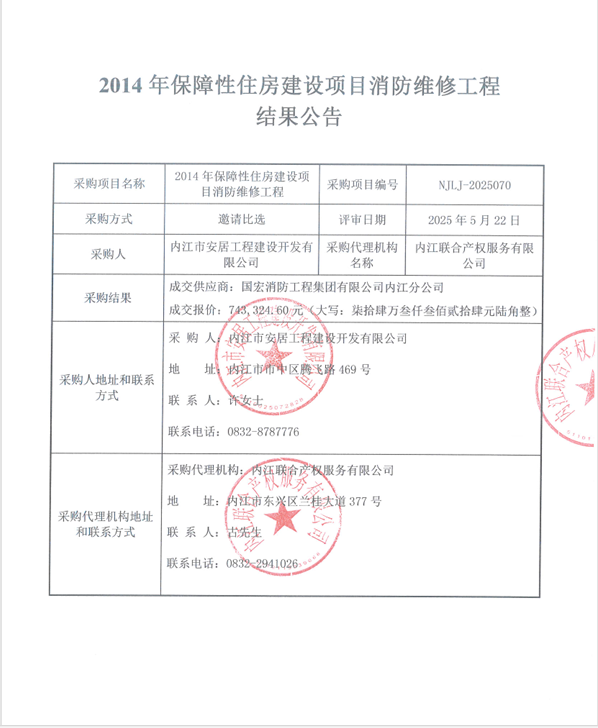 2014年保障性住房建設(shè)項目消防維修工程結(jié)果公告