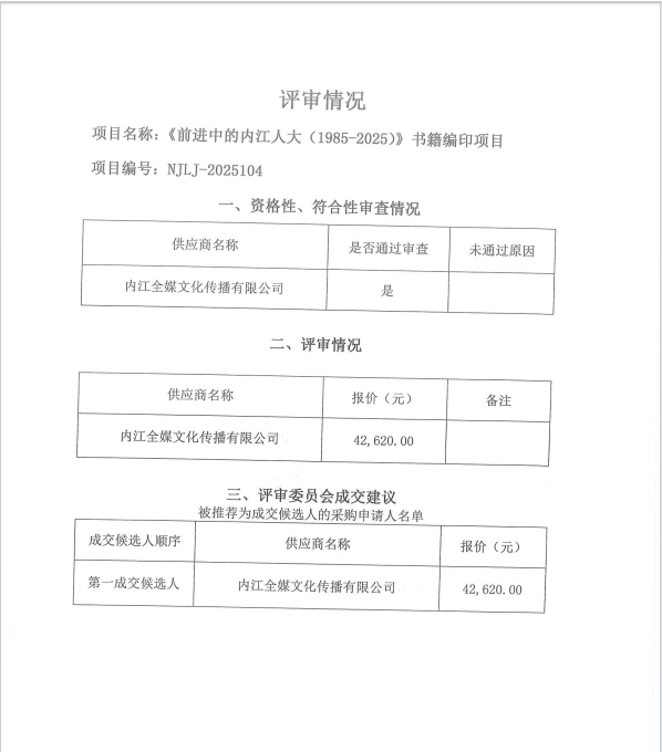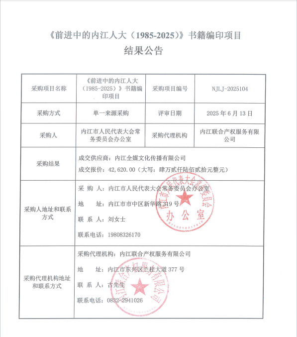 《前進中的內(nèi)江人大(1985-2025)》書籍編印項目結果公告