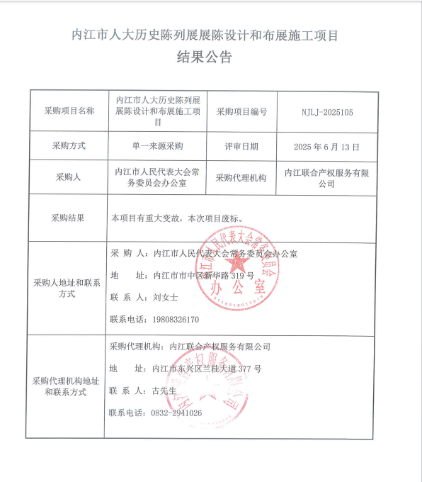 內(nèi)江市人大歷史陳列展展陳設(shè)計(jì)和布展施工項(xiàng)目結(jié)果公告