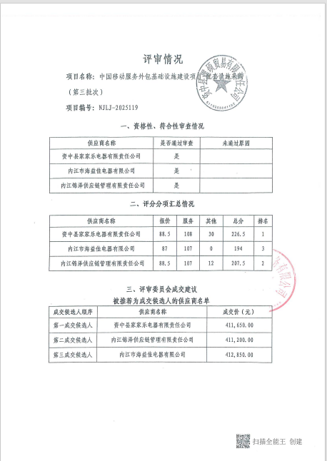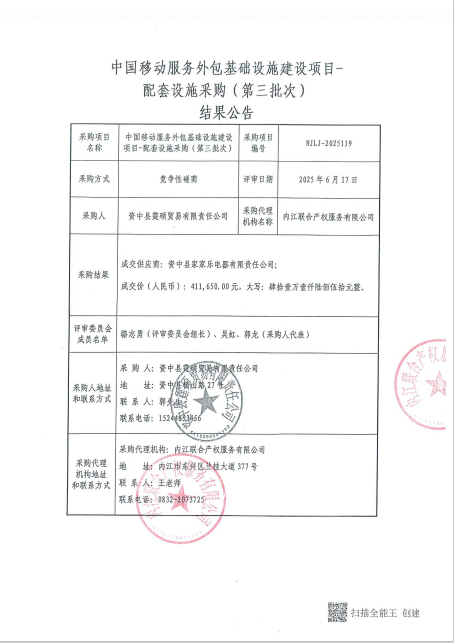 中國移動(dòng)服務(wù)外包基礎(chǔ)設(shè)施建設(shè)項(xiàng)目-配套設(shè)施采購(第三批次)結(jié)果公告