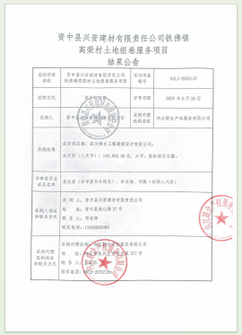 資中縣興資建材有限責(zé)任公司鐵佛鎮(zhèn)高榮村土地組卷服務(wù)項(xiàng)目結(jié)果公告