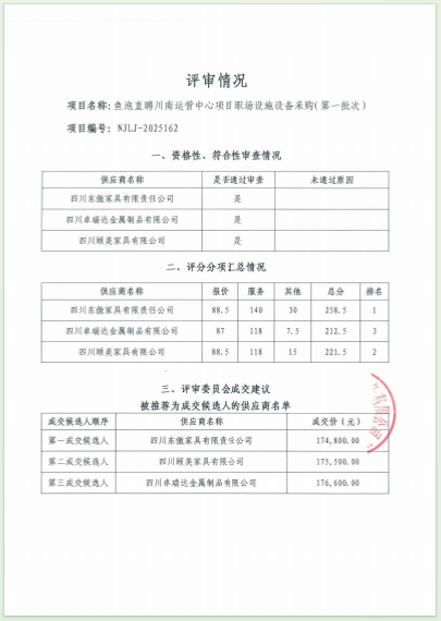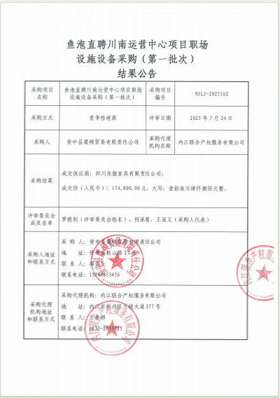 魚(yú)泡直聘川南運(yùn)營(yíng)中心項(xiàng)目職場(chǎng)設(shè)施設(shè)備采購(gòu)(第一批次)結(jié)果公告