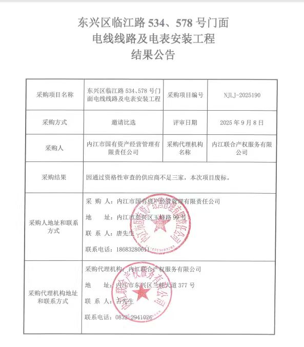 東興區(qū)臨江路534、578號(hào)門面電線線路及電表安裝工程結(jié)果公告
