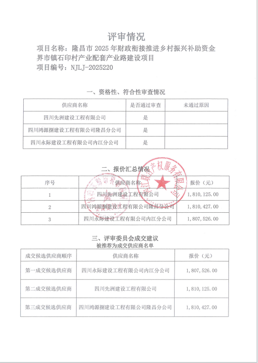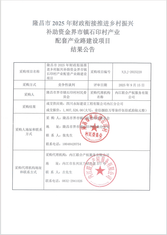隆昌市2025年財(cái)政銜接推進(jìn)鄉(xiāng)村振興補(bǔ)助資金界市鎮(zhèn)石印村產(chǎn)業(yè)配套產(chǎn)業(yè)路建設(shè)項(xiàng)目結(jié)果公告