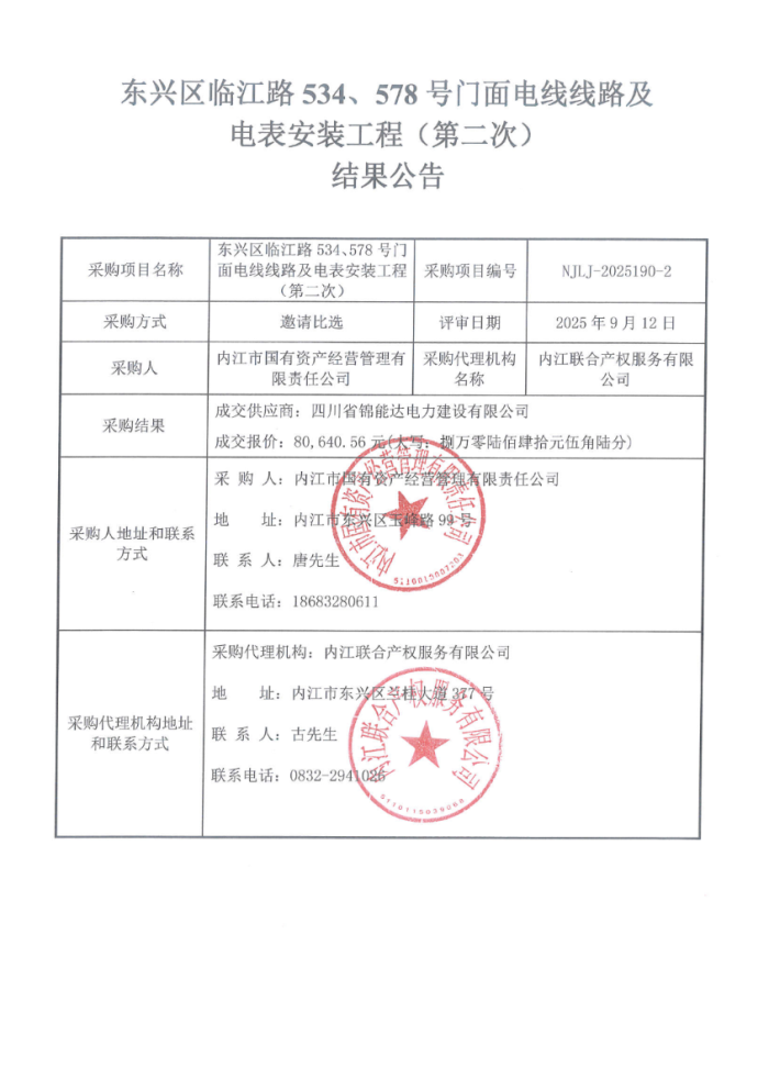 東興區(qū)臨江路534、578號門面電線線路及電表安裝工程(第二次)結(jié)果公告