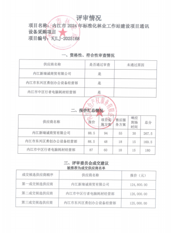 內(nèi)江市2024年標準化林業(yè)工作站建設(shè)項目通訊設(shè)備采購項目結(jié)果公告