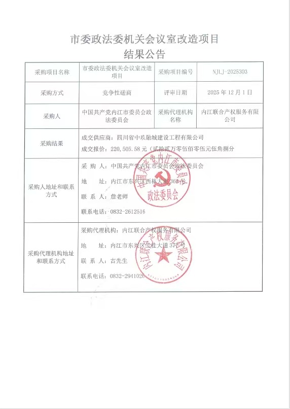 市委政法委機(jī)關(guān)會(huì)議室改造項(xiàng)目結(jié)果公告