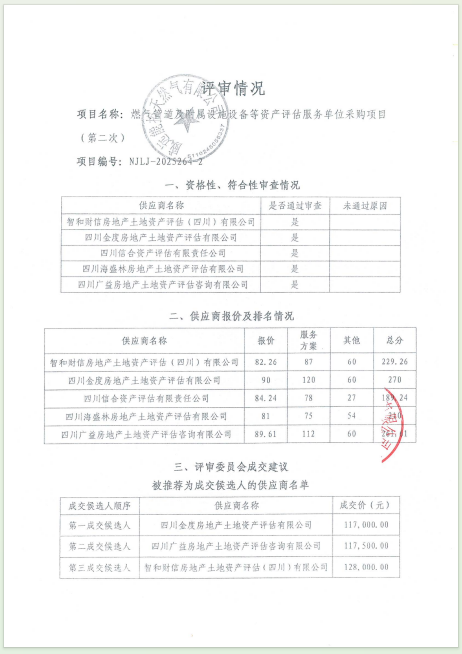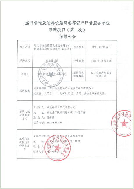 燃?xì)夤艿兰案綄僭O(shè)施設(shè)備等資產(chǎn)評估服務(wù)單位采購項(xiàng)目(第二次)結(jié)果公告