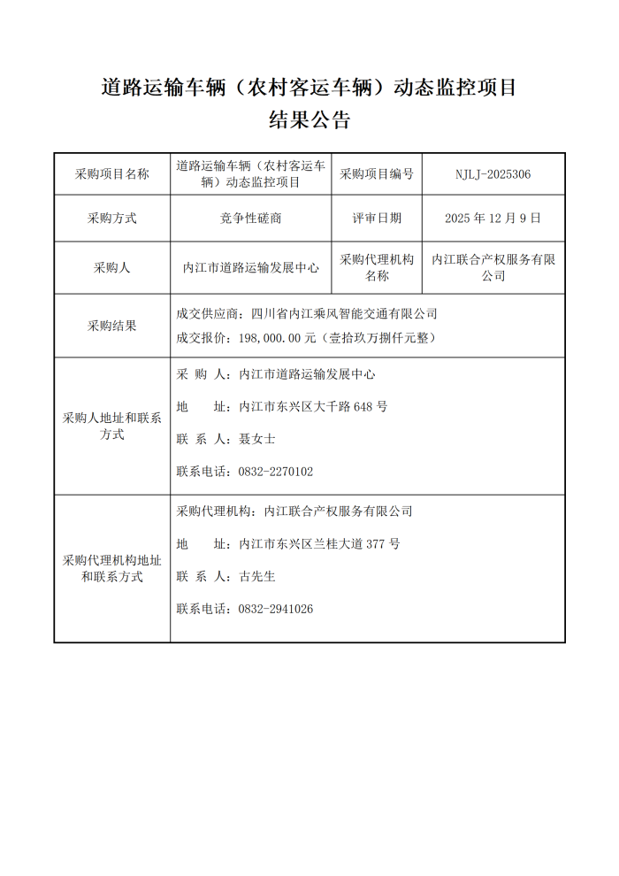 道路運輸車輛(農(nóng)村客運車輛)動態(tài)監(jiān)控項目結果公告