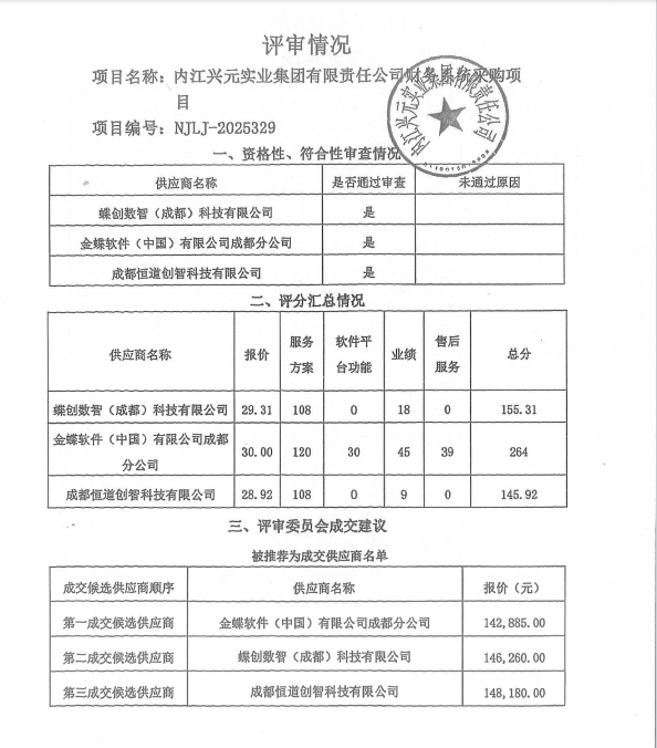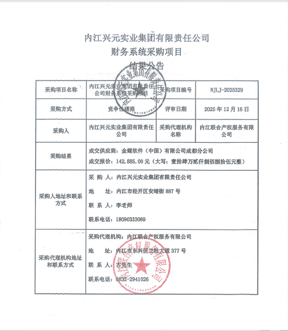 內(nèi)江興元實(shí)業(yè)集團(tuán)有限責(zé)任公司財(cái)務(wù)系統(tǒng)采購(gòu)項(xiàng)目結(jié)果公告