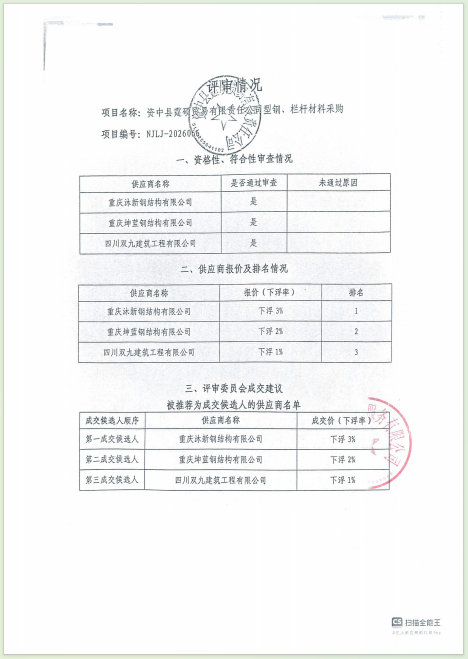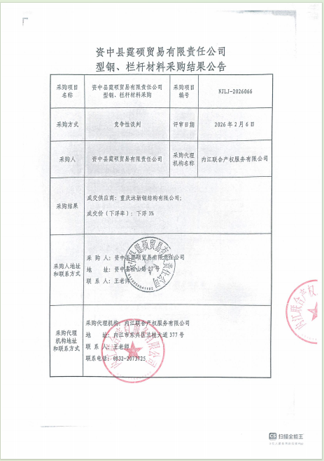 資中縣霆碩貿(mào)易有限責(zé)任公司型鋼、欄桿材料采購(gòu)結(jié)果公告