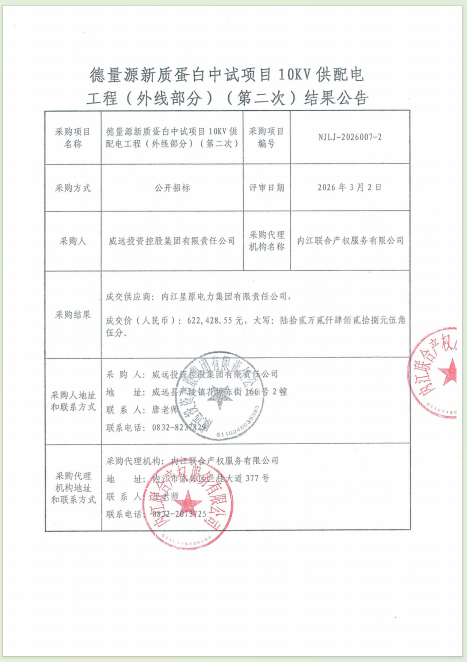 德量源新質蛋白中試項目10KV供配電工程(外線部分)(第二次)結果公告